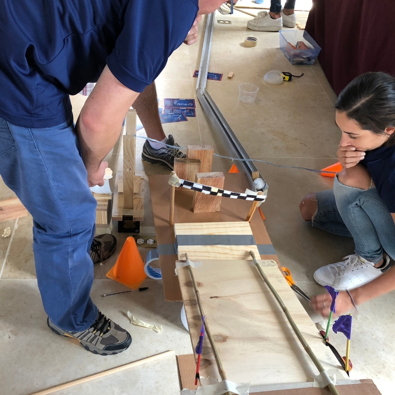 Mientras hacen uso de sus habilidades de resolución de problemas, creatividad y comunicación, los equipos tienen que trabajar juntos de manera eficaz en la fase de diseño para crear un ámbito realista.
