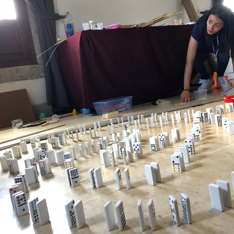 Impulsar la creatividad, innovación y resolución de problemas, creando una secuencia funcional de reacciones que combine ingenio y trabajo conjunto.