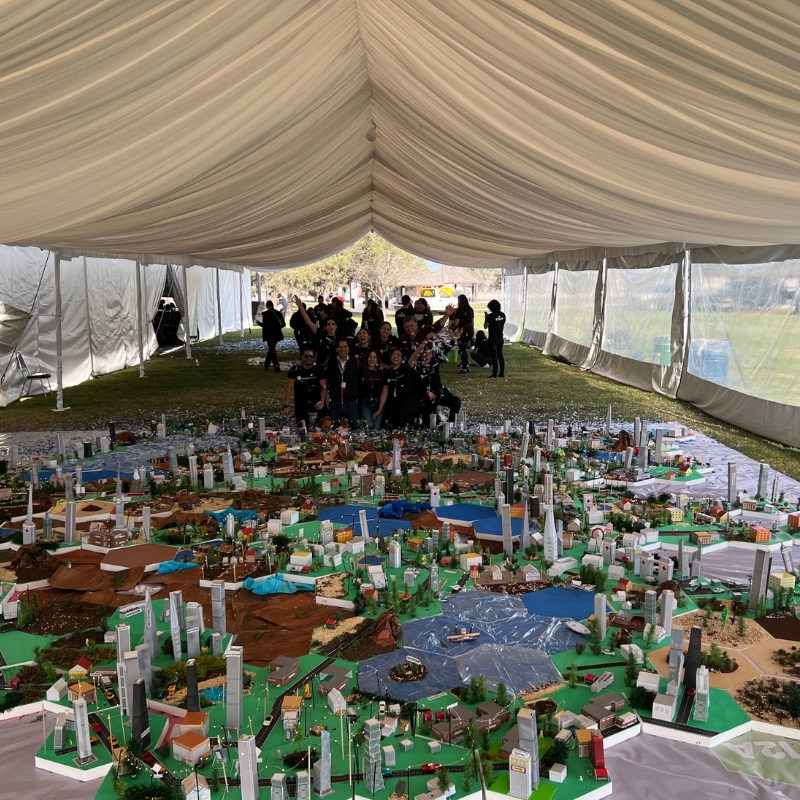 El objetivo de la actividad es que el grupo construya una ciudad modelo gigante que dependa de la creatividad pero también de una fuerte planificación y disciplina en los equipos de diseño y construcción.