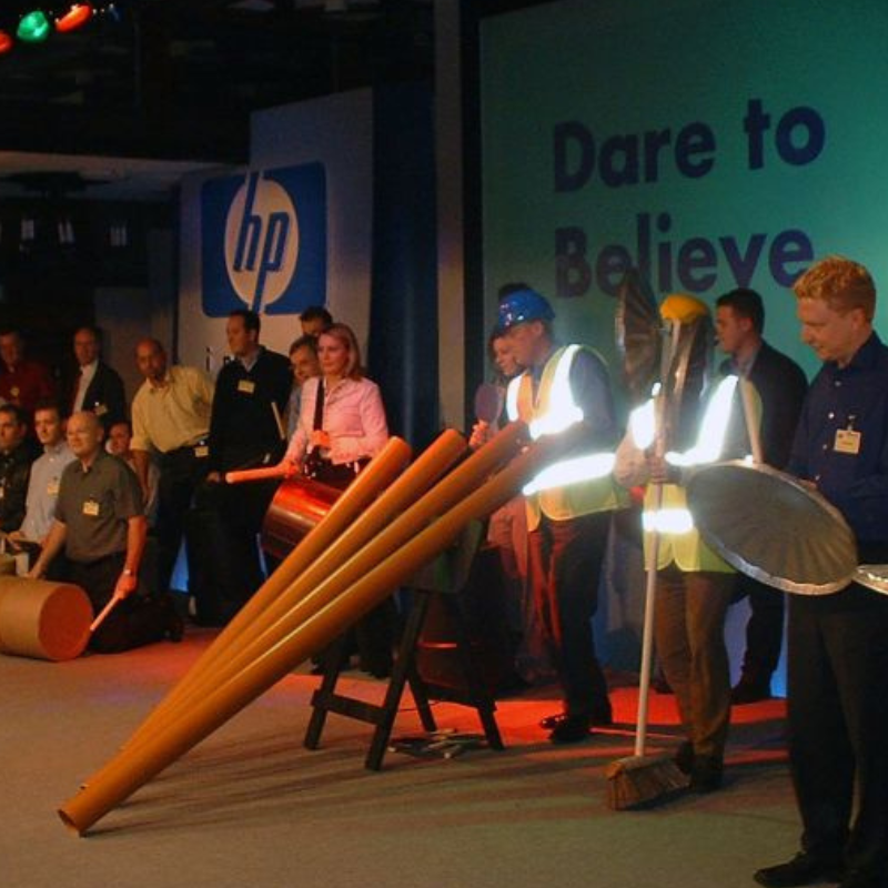 ¡Los equipos crean su propio carnaval en solo 90 minutos! Los participantes descubrirán los sonidos que se pueden hacer con instrumentos como cubos de basura, tuberías de desagüe y escobas del patio, así como los efectos visuales que se pueden crear a partir de un sinfín de artículos de “uniforme urbanos”.